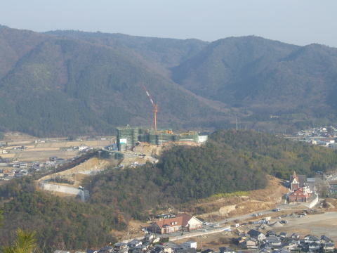 手前の茶色の屋根の建物が障害者支援福祉施設です。