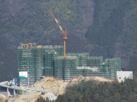 屋根まで完成すると黄色のクレーンの高さまでとなります。